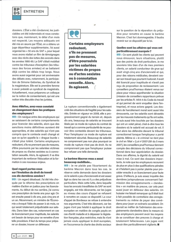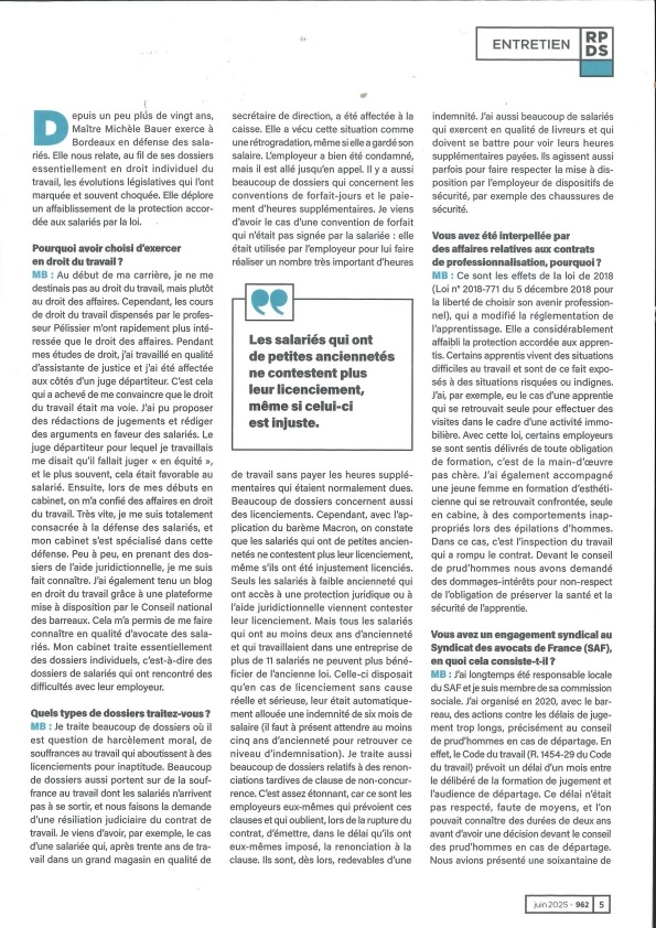 Un portrait paru dans la revue pratique de droit social en 2025: